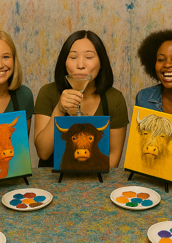 Our sip & paint sessions are perfect for beginners. The session leader will set up an image or still life in the room and then provide help and instructions so at the end you will have your own masterpiece to take home.